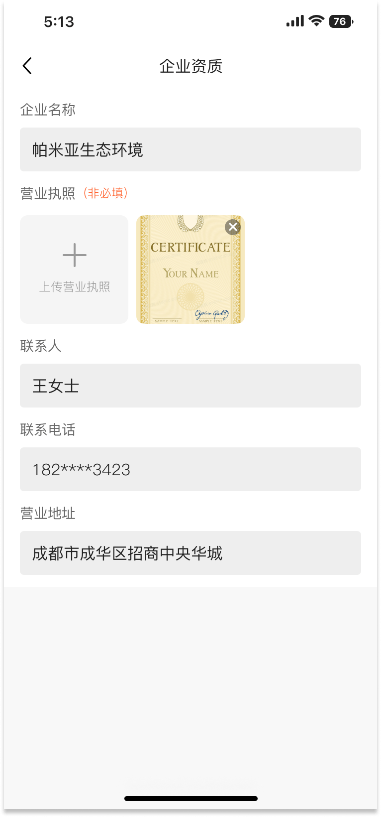 4. 资质管理:企业可以上传、管理和展示企业资质证书,提升企业形象。