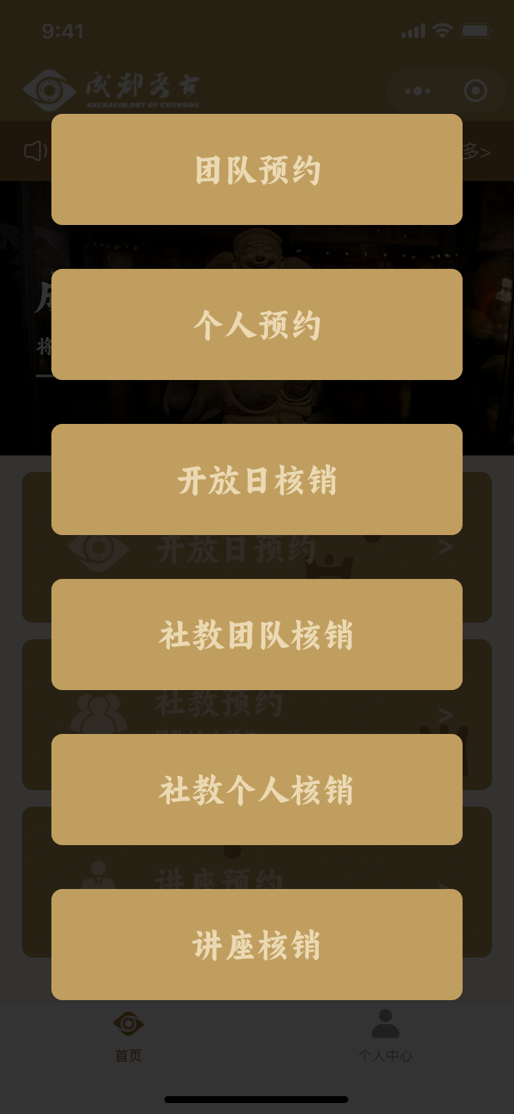 为了提高考古活动的组织和管理效率,小程序特别设计了开放日核销、社教团队核销、社教个人核销和讲座核销等功能。这些功能帮助工作人员快速确认参与者的预约信息,确保活动的顺利进行。同时,核销功能也为用户提供了一种便捷的签到方式,提升了整体的活动体验。