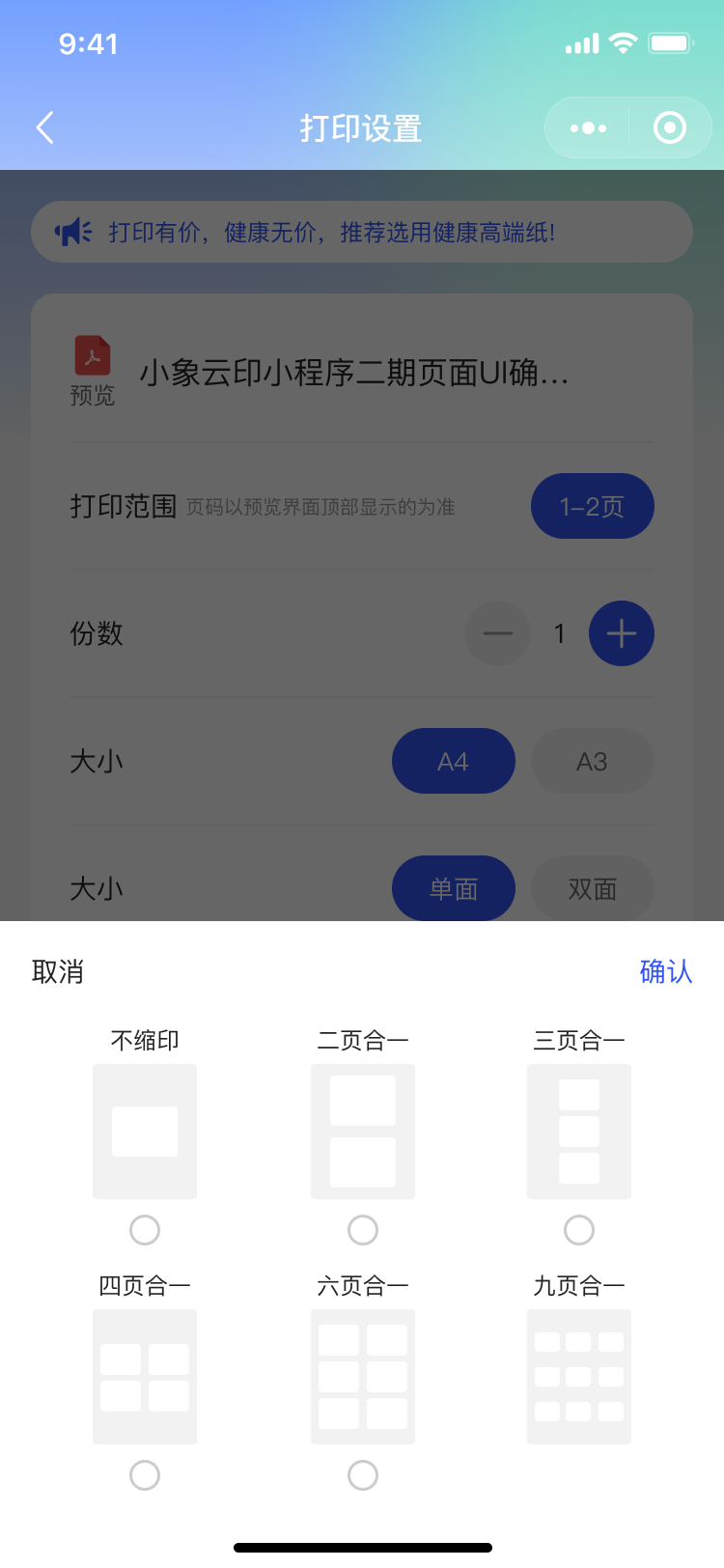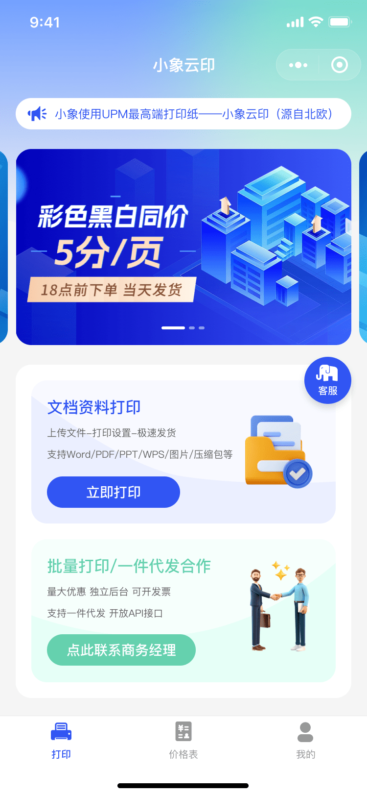 ng体育公司紧跟时代步伐,为客户定制开发了一款高端云打印小程序——小象云印。这款小程序以其强大的打印功能和多样化的支付方式,提升了平台的竞争力,满足了用户个性化、便捷化的打印需求。