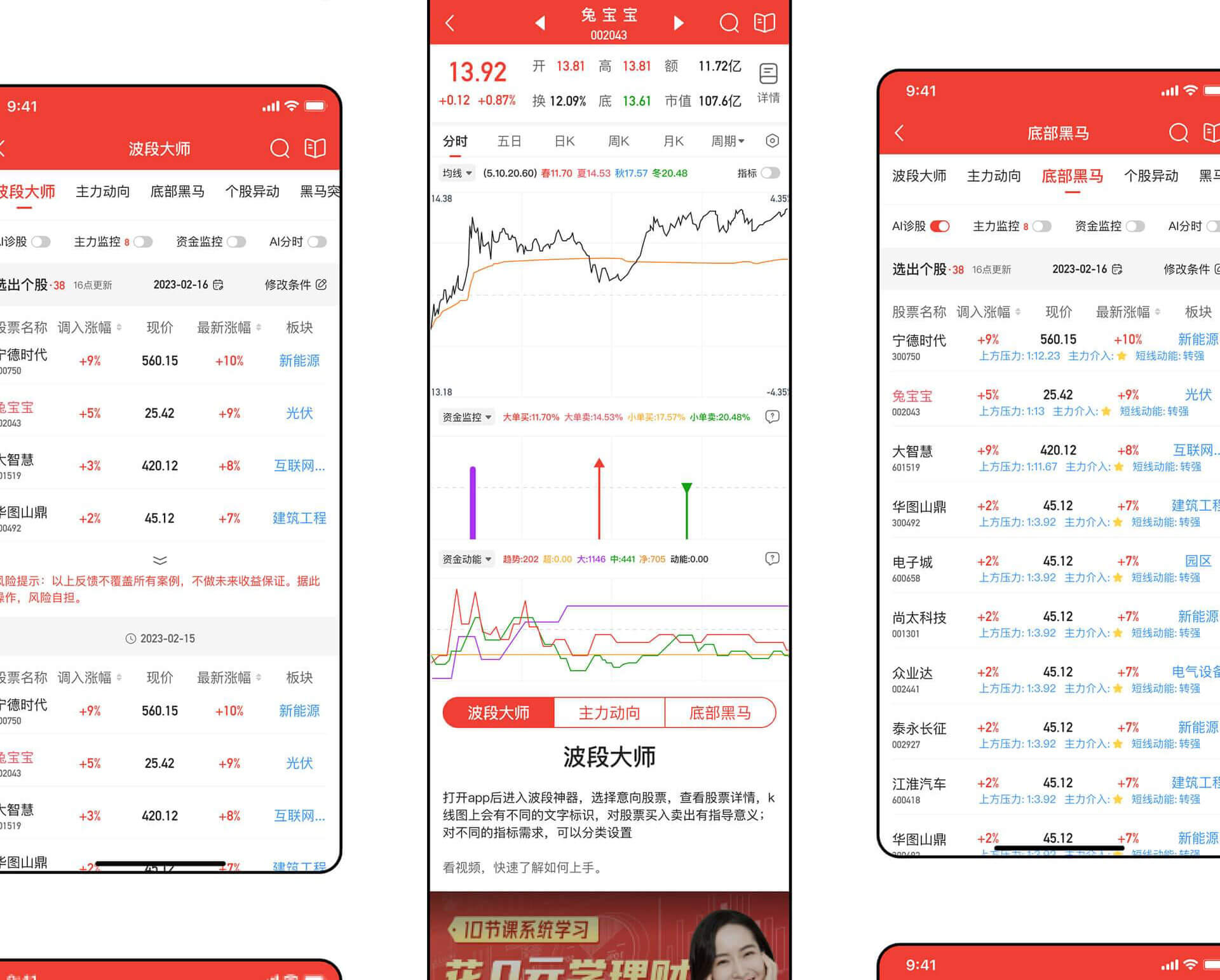 核心功能包括波段大师和主力动向等。波段大师是一个基于算法分析的市场趋势预测工具,可以帮助用户识别股票或其他金融资产的买卖时机。主力动向则是一个分析市场主要参与者的动向的功能,如机构投资者或大户,为用户提供市场动向的洞察。