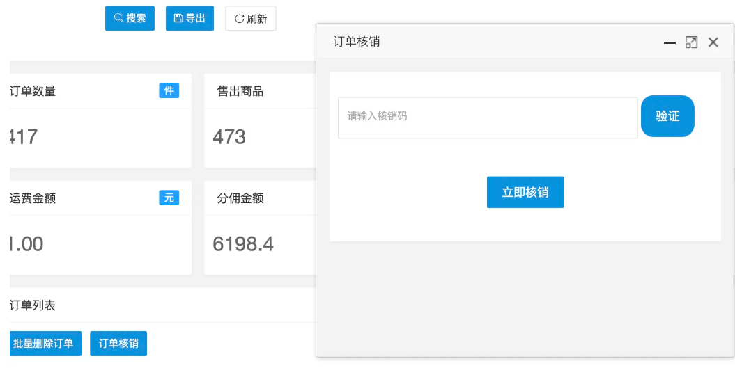 4.核销员收到订单后,在商城系统中点击核销操作,生成核销码。