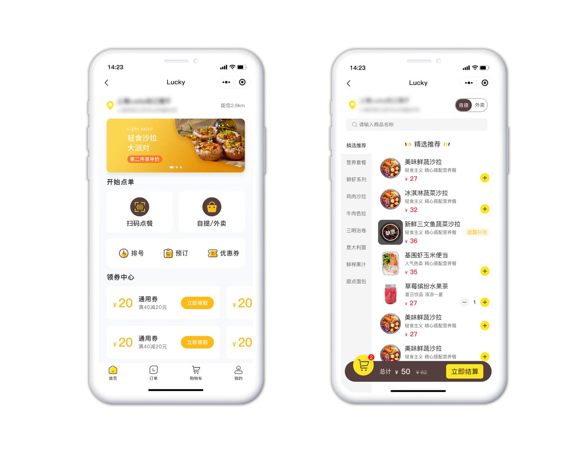 3. 线上点餐:用户可以在小程序中选择菜品并下单,选择送餐或自取等方式,方便快捷。