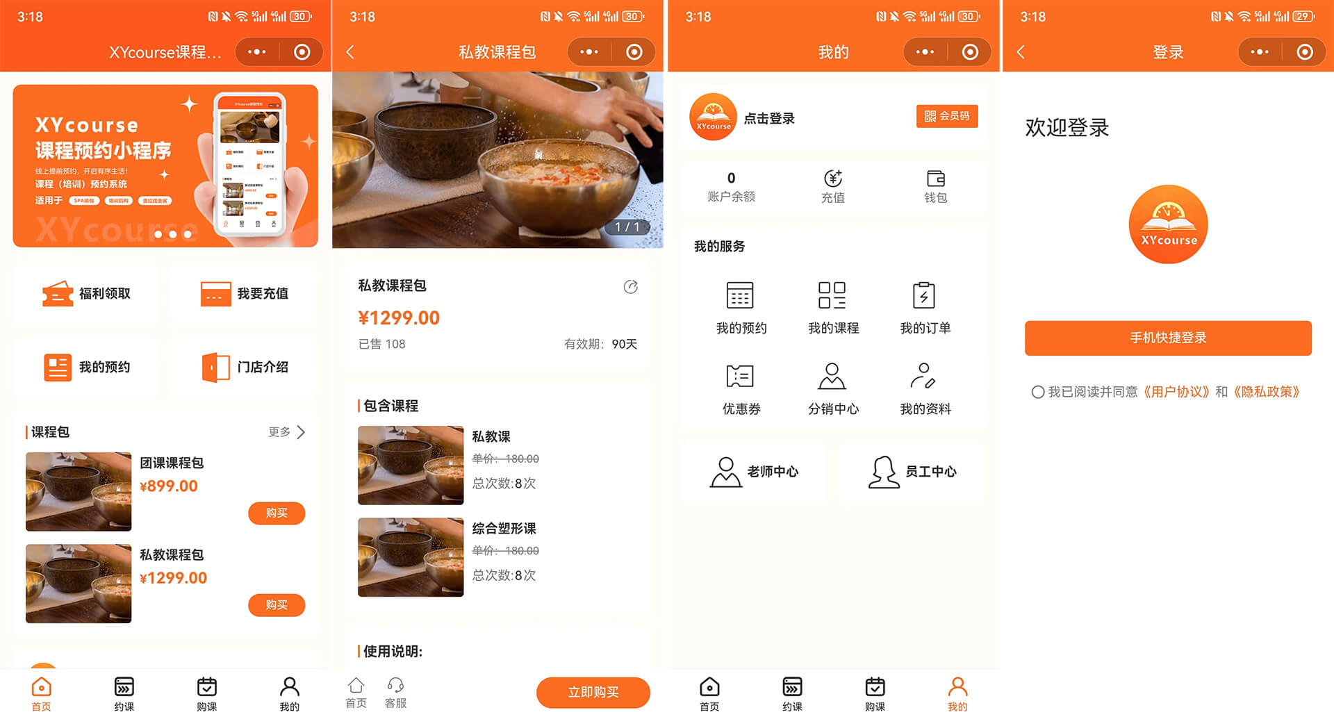 瑜伽馆、普拉提等机构课程预约微信小程序