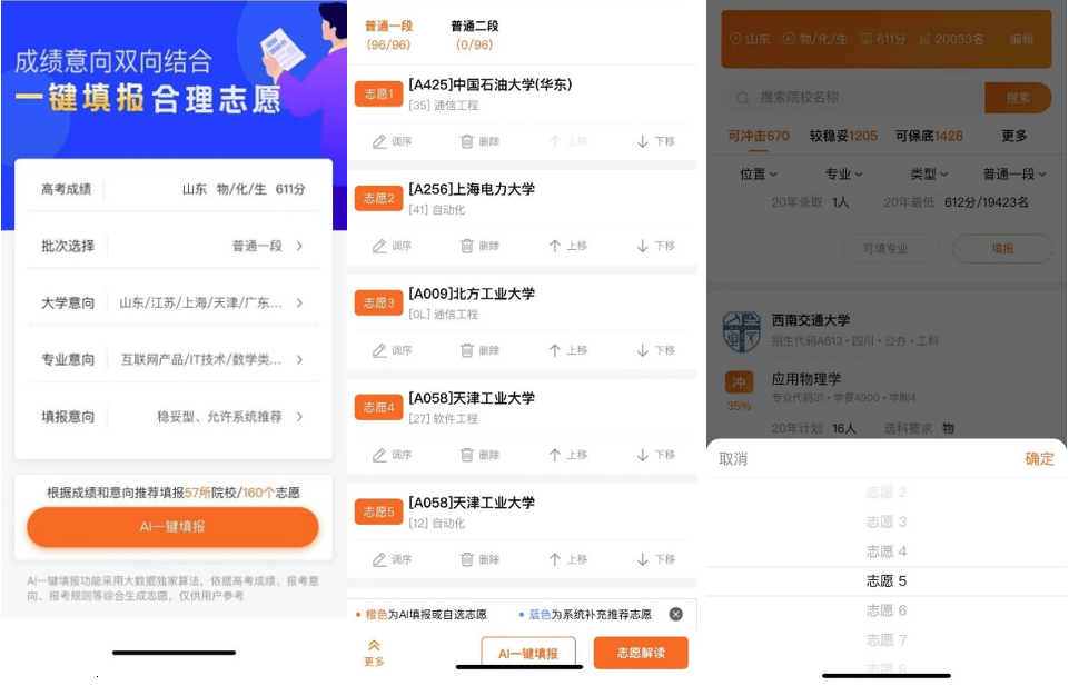 4. 志愿填报:考生可以根据兴趣、爱好、积累等多方面的考虑,进行志愿选择,同时也可以进行志愿调整,直到最满意为止。