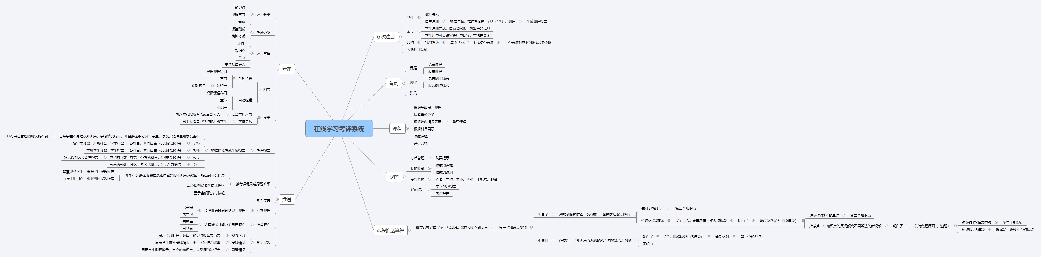 题目分类,考试题型,题目管理,发卷,考评结果,综合报告等功能